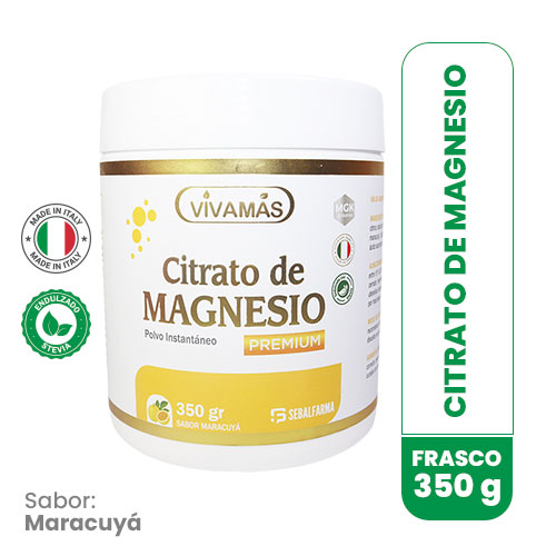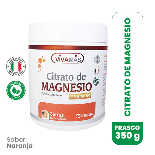 El complemento nutricional en forma de efervescente VIVAMÁS CITRATO DE MAGNESIO SABOR A NARANJA es un producto obtenido a partir de un batido uniforme partiendo de materia prima limpias, sanas, libres de infestación por insectos y de cualquier otra materia extraña objetable. Ayuda a mantener los huesos fuertes y saludables, puede ayudar a mejorar el sueño al facilitar la relajación muscular, también en la recuperación después de una actividad intensa y se usa para tratar el estreñimiento de corto plazo.